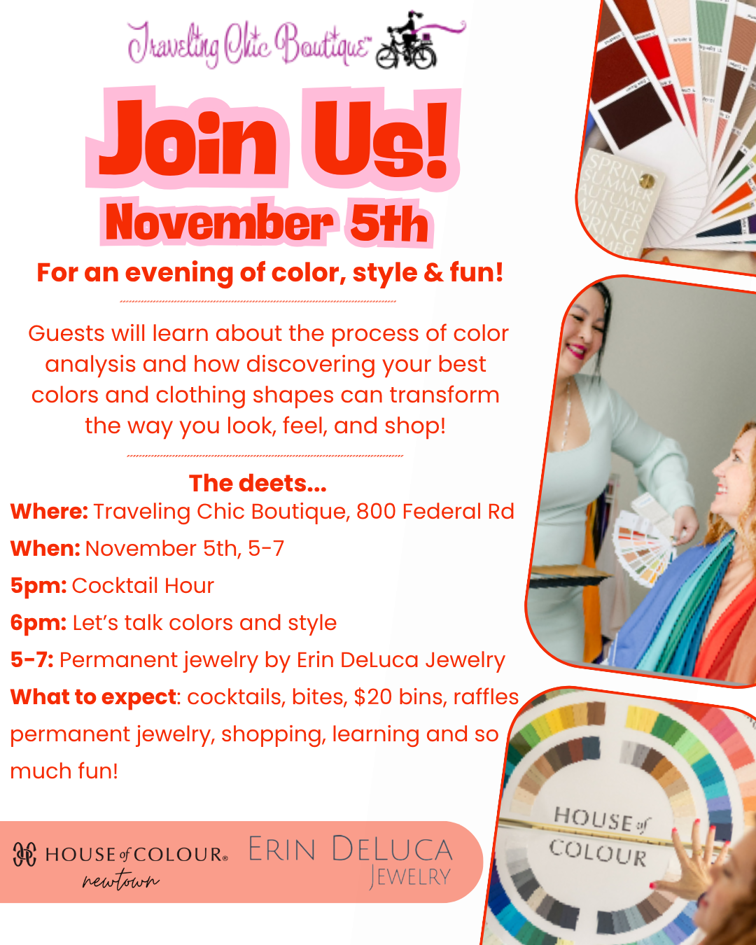 “Make it a night with your besties! 💕 Book a private Girls’ Shopping Night and enjoy 10% off, our signature cocktail, and light bites while you shop the latest looks. A little fashion, a little fun, and a lot of memories—reserve your night today!”