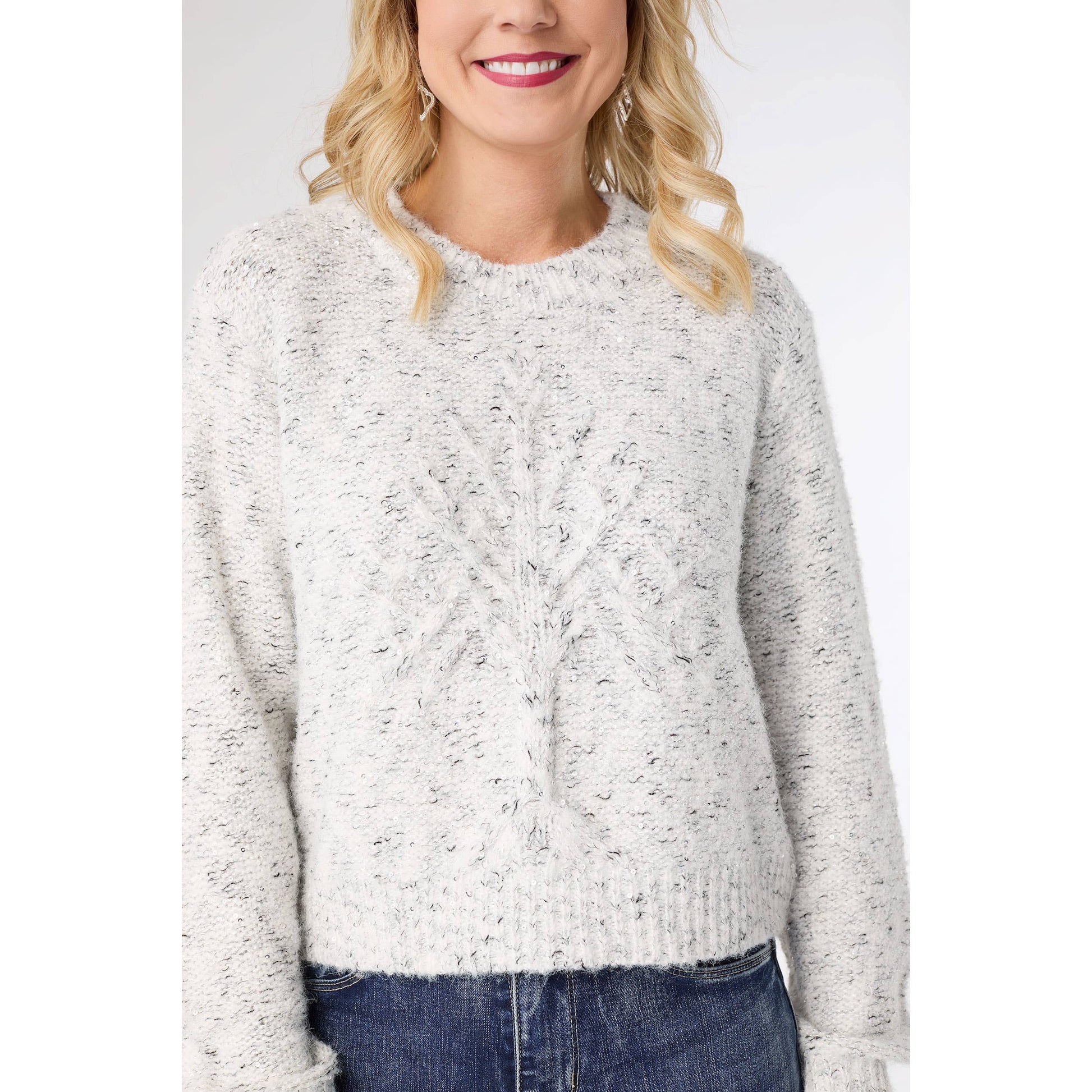 Alivia Sparkle Sweater w/ Front Cable Knit Tree - Christmas